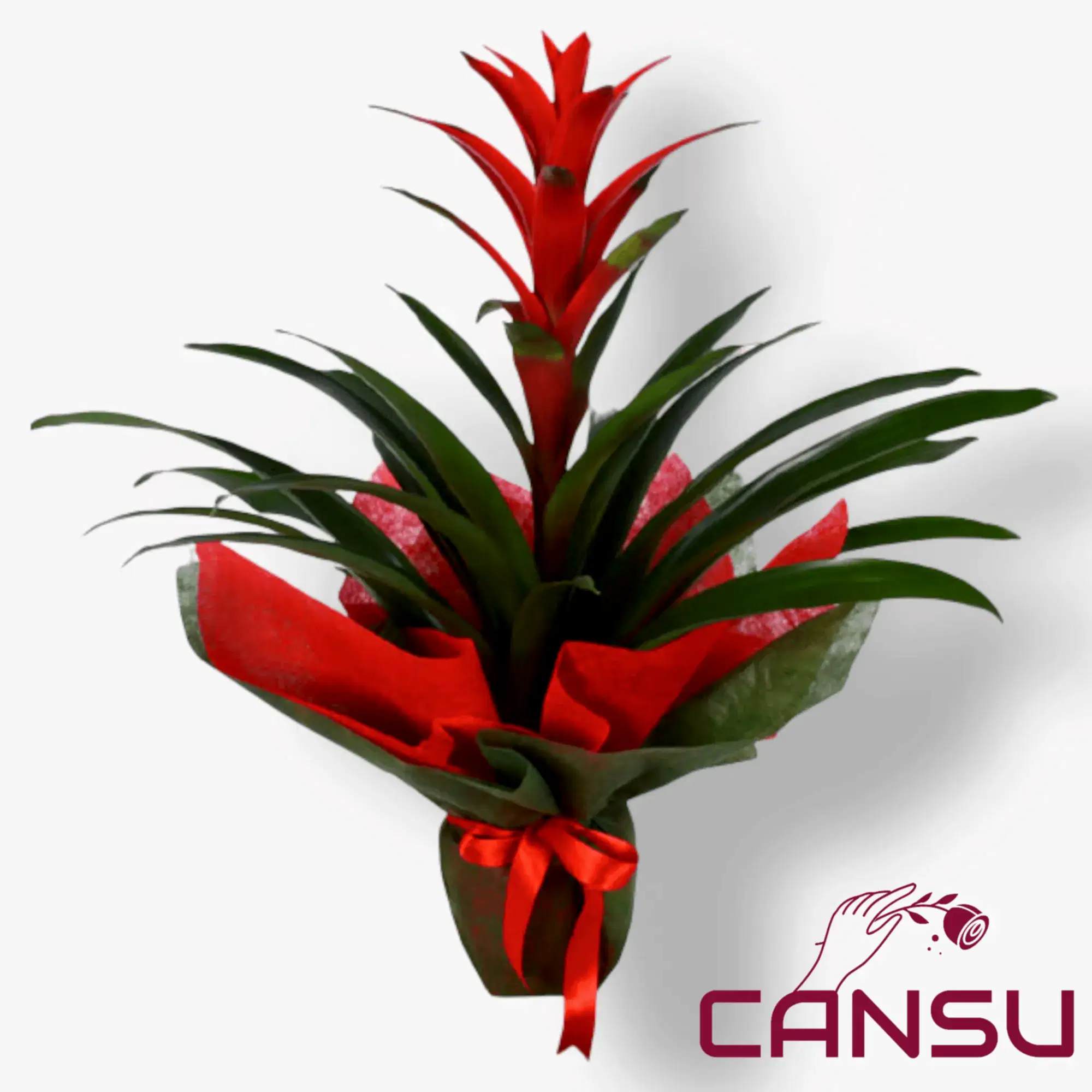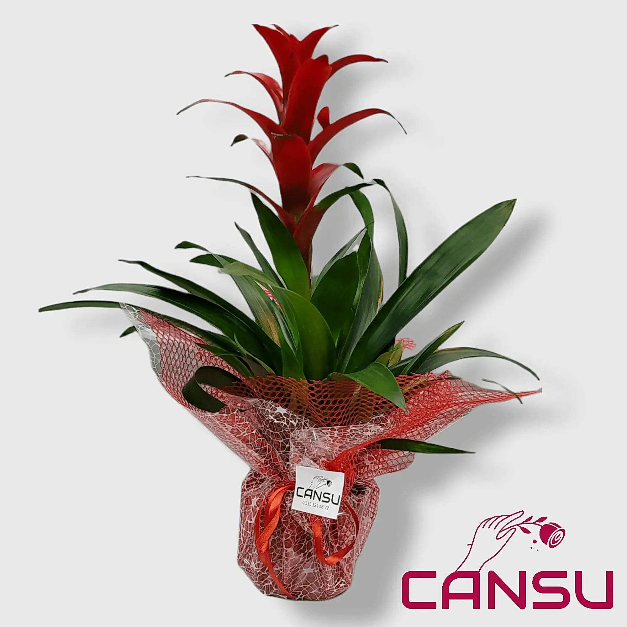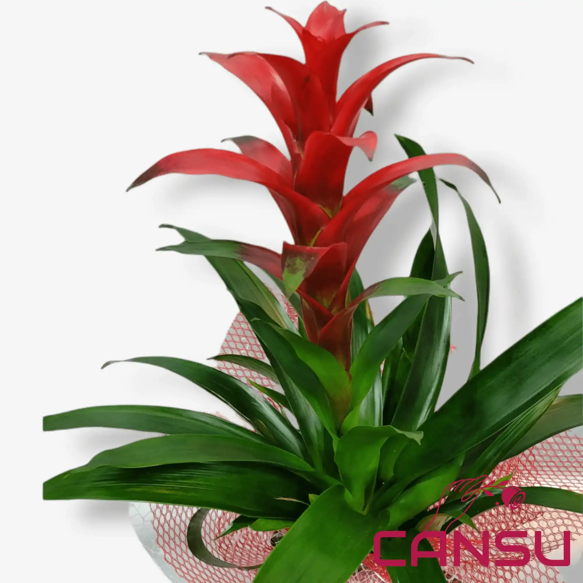 Parlak kırmızı, turuncu veya sarı renklerde çiçek başlarıyla öne çıkan Guzmania, şık saksılarla sunulur. Kişisel not ekleyerek hediye olarak daha anlamlı hale getirebilirsiniz.