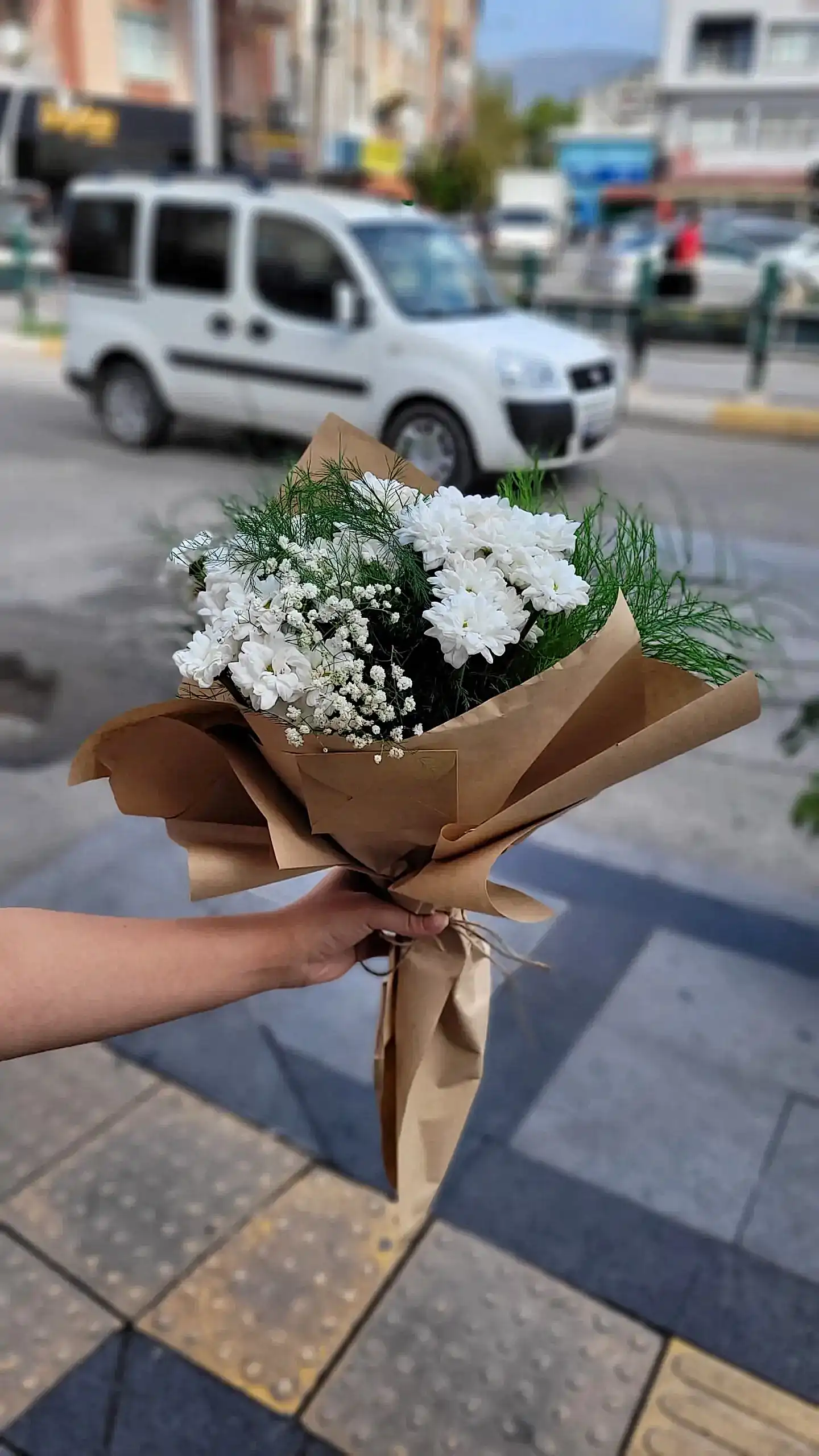 Doğallığın ve saflığın sembolü olan papatyalar, kraft kâğıt ile buluşarak sade ama etkileyici bir bukete dönüşüyor. İçtenliği ve samimiyeti ifade etmek isteyenler için ideal bir çiçek seçimidir.